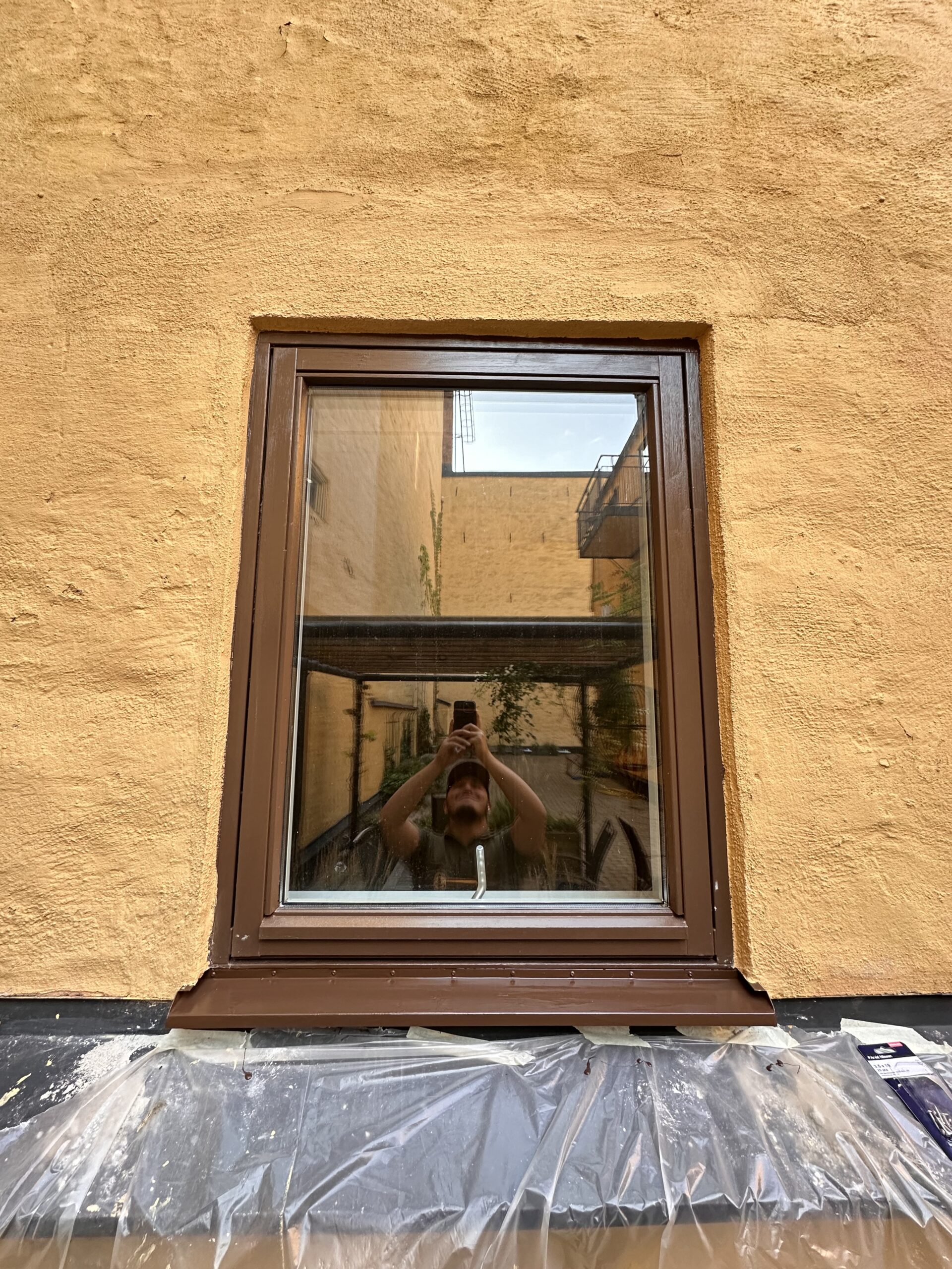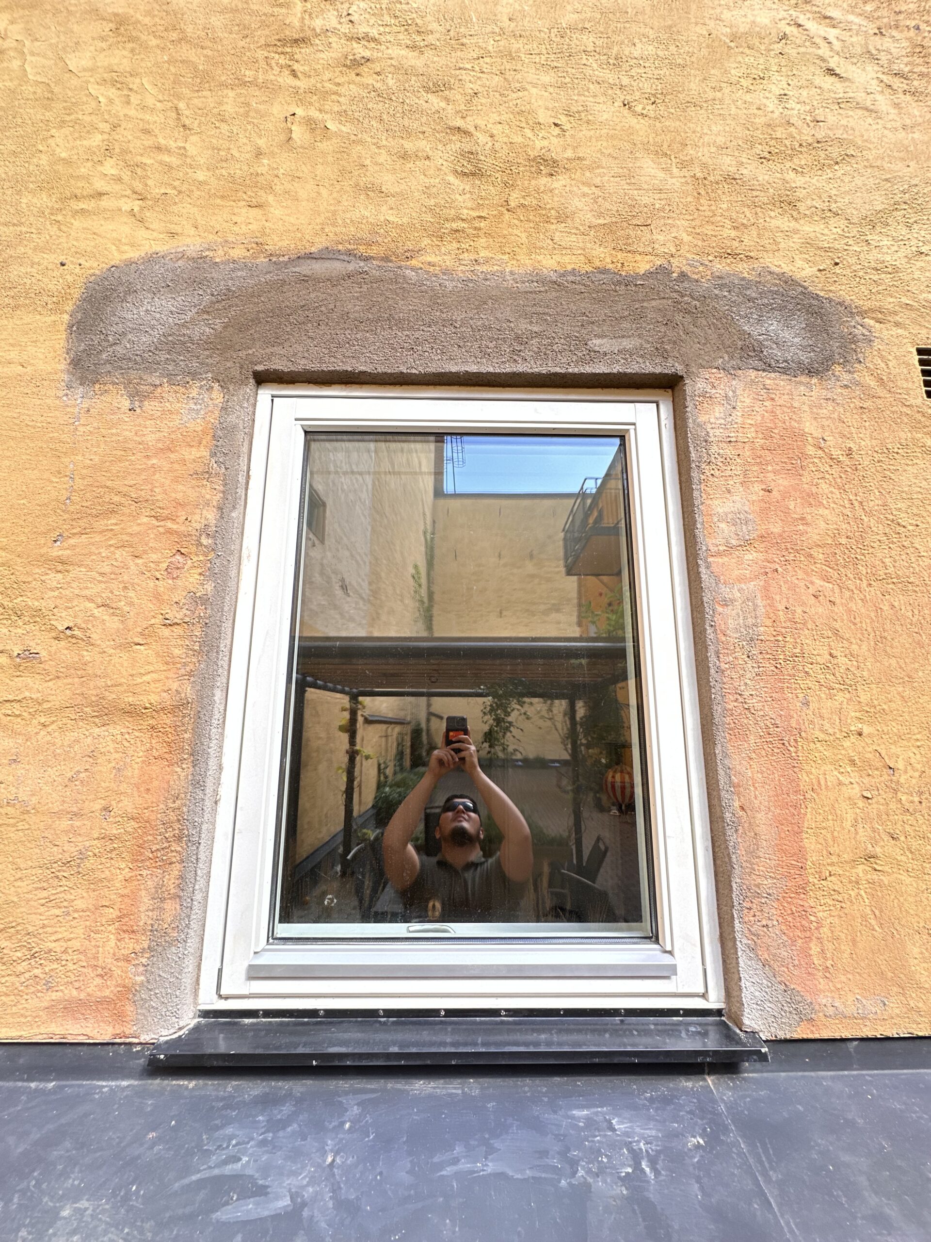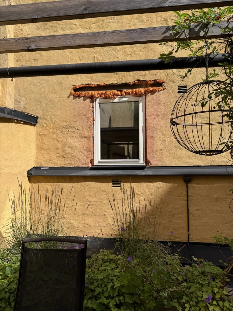 När stommen var säkrad monterades fönstret på plats, följt av noggrant efterarbete med putsning och målning för ett enhetligt och snyggt slutresultat. Ingenting lämnades halvfärdigt – fasaden ska se ut som om fönstret alltid funnits där.